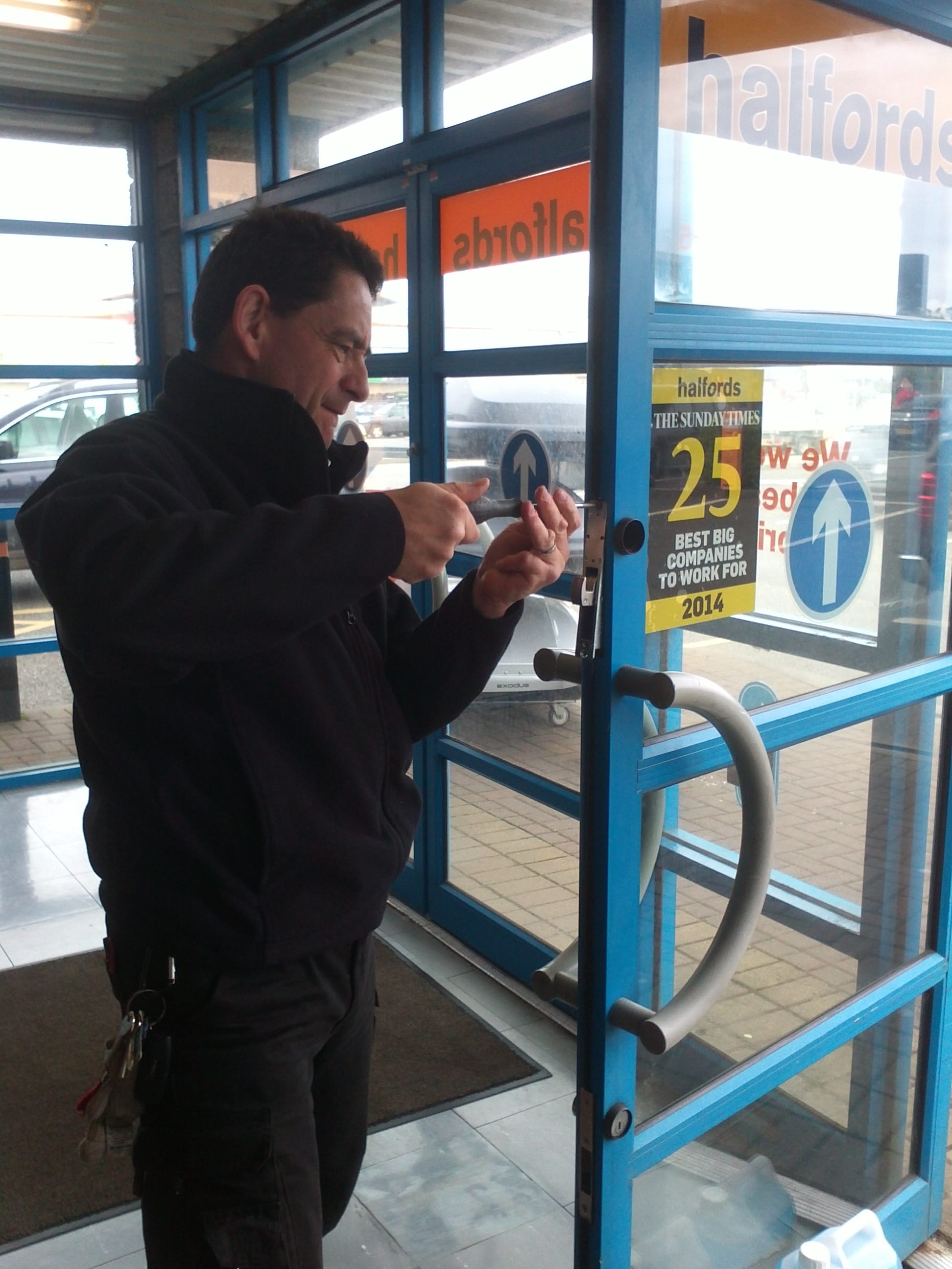 Halfords in Camborne recently had a long term fault with their front door locks which finally required fixing. They had called in a couple of other companies to sort the problems out but for some reason or another none of them had managed to find them a solution.